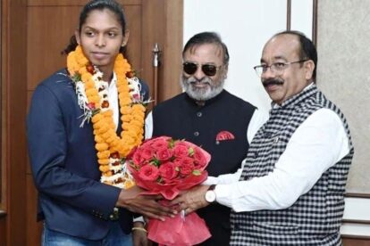 उप मुख्यमंत्री साव से मिलीं कबड्डी विश्व कप की मोस्ट वेल्युबल प्लेयर संजू देवी, मंत्री ने थपथपाई पीठ