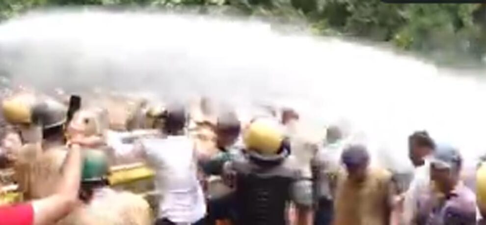 विरोध स्थल से सामने आए वीडियो में प्रदर्शनकारी बैरिकेड तोड़ने की कोशिश करते दिख रहे हैं, जिसके बाद पुलिस को भीड़ को तितर-बितर करने के लिए पानी की बौछारें छोड़नी पड़ीं। स्थिति को नियंत्रित करने के लिए राज्य पुलिस ने आंसू गैस के गोले भी दागे और प्रदर्शनकारियों पर पानी की बौछारें जारी रखीं।