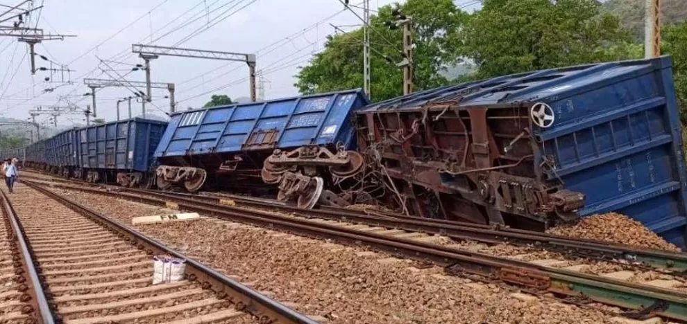 घटना गुरुवार दोपहर लगभग ढाई बजे की बताई जा रही है। मालगाड़ी किरंदूल से लौह अयस्क भरकर विशाखापट्टनम जा रही थी। डबल लाइन होने से रेल आवागमन बाधित नहीं हुआ है। रेलवे की टीम मौके पर पहुंच कर दुर्घटना की जांच में जुट गई है।