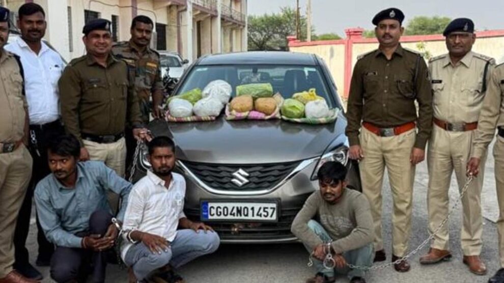 मुंगेली। मुंगेली पुलिस ने बड़ी कार्रवाई करते हुए तीन गांजा तस्कर को गिरफ्तार किया है। पुलिस ने इनके पास से 1 लाख से अधिक कीमत का गांजा जब्त किया है। आरोपियों के पास से 10 किलोग्राम गांजा, 2 मोबाइल फोन और एक मारुति बलेनो कार बरामद की गई है।