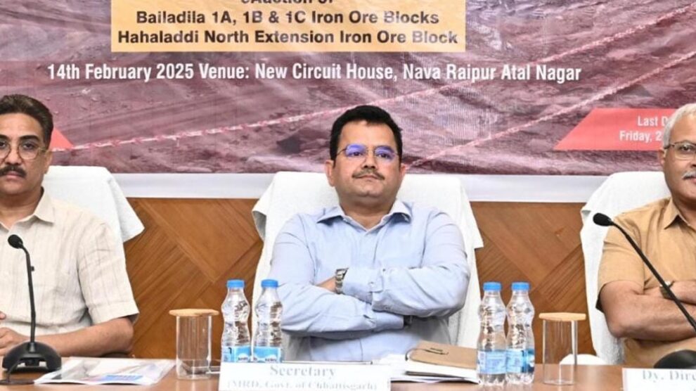 रायपुर। संचालनालय भौमिकी एवं खनिकर्म, छत्तीसगढ़ द्वारा बस्तर के बैलाडीला क्षेत्र के लौह अयस्क ब्लॉकों की नीलामी को लेकर आज नवा रायपुर के न्यू सर्किट हाउस स्थित कन्वेंशन हॉल में ‘प्री-बिड कॉन्फ्रेंस’ का आयोजन किया गया। इस बैठक में देशभर से आए खनन निवेशकों और बोलीदाताओं ने भाग लिया, जहां नीलामी प्रक्रिया, निवेश अवसरों, और खनिज संसाधनों पर विस्तृत चर्चा हुई।