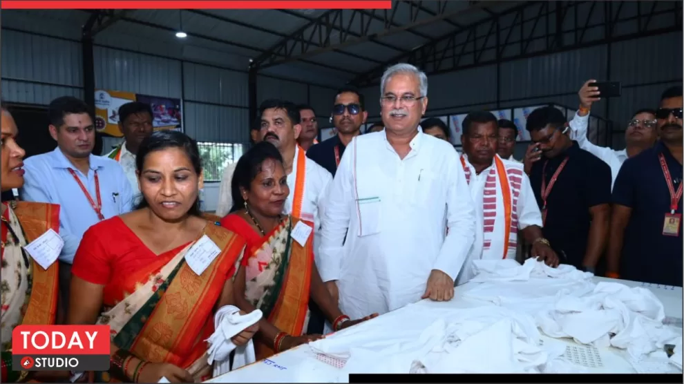 रायपुर. मुख्यमंत्री श्री भूपेश बघेल ने ईटपाल स्थित बीजापुर गवर्नमेंट फैक्ट्री का लोकार्पण किया। इस अवसर पर उन्होंने गारमेंट फैक्ट्री में चल रहे कपड़ा निर्माण के कार्यों का निरीक्षण भी किया और यहां कार्यरत महिलाओं से बात की। श्री बघेल ने फैक्ट्री से हरी झंडी दिखाकर बाजार के लिए तैयार उत्पादों की पहली खेप को रवाना किया।
