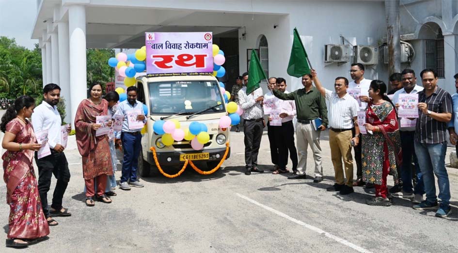 जांजगीर-चांपा। कलेक्टर जन्मेजय महोबे ने कलेक्ट्रेट परिसर से बाल विवाह मुक्त छत्तीसगढ़ अभियान अंतर्गत बाल विवाह रोकथाम रथ को हरी झंडी दिखाकर रवाना किया। इस दौरान अपर कलेक्टर ज्ञानेंद्र सिंह ठाकुर, जिला कार्यक्रम अधिकारी श्रीमती अनिता अग्रवाल, जिला बाल संरक्षण अधिकारी गजेंद्र सिंह जायसवाल सहित संबंधित अधिकारी कर्मचारी उपस्थित थे।