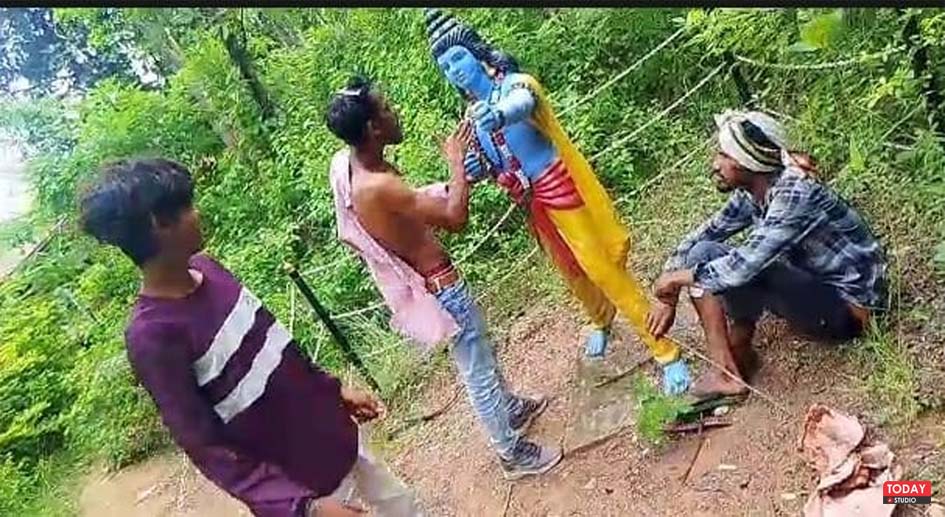 कांकेर। नवागांव स्थित ईशान वन में एक चौंकाने वाला मामला सामने आया है, जहां नशे में धुत दो युवकों ने भगवान राम और हनुमान की मूर्तियों पर थप्पड़ बरसाए। इस पूरे घटनाक्रम का वीडियो सोशल मीडिया पर तेजी से वायरल हो रहा है। वीडियो में साफ दिख रहा है कि दोनों युवक धार्मिक मूर्तियों के पास पहुंचकर न सिर्फ असम्मानजनक हरकत कर रहे हैं, बल्कि आपत्तिजनक भाषा का भी इस्तेमाल कर रहे हैं। इस वीडियो के सामने आने के बाद क्षेत्र में भारी आक्रोश है।