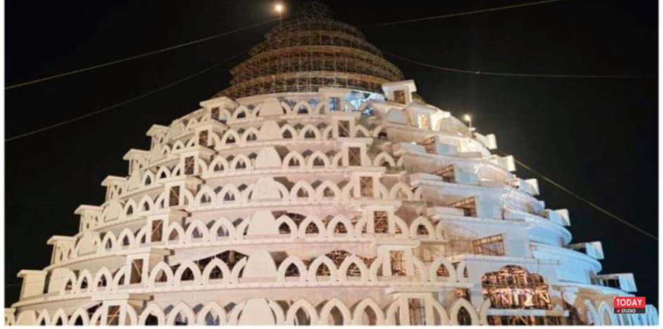 140 फीट ऊंचा पंडाल, 150 फीट चौड़ा भव्य प्रवेश द्वार और 35 फीट ऊंची प्रतिमा