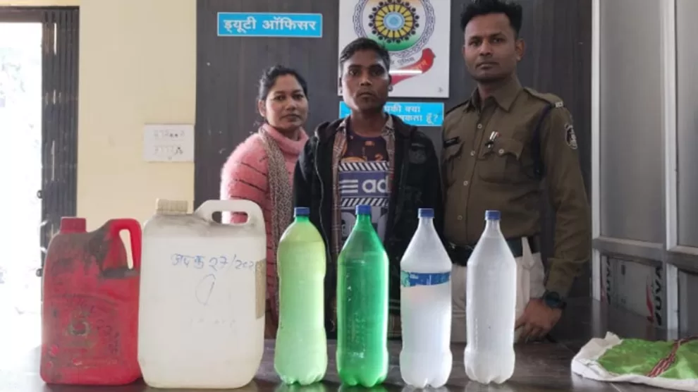 रायगढ़। चक्रधरनगर पुलिस ने कल ग्राम लामीदरहा में छापामार कार्रवाई करते हुए अवैध रूप से महुआ शराब बेचने वाले सुनील उरांव को 23 लीटर महुआ शराब के साथ गिरफ्तार किया गया है ।