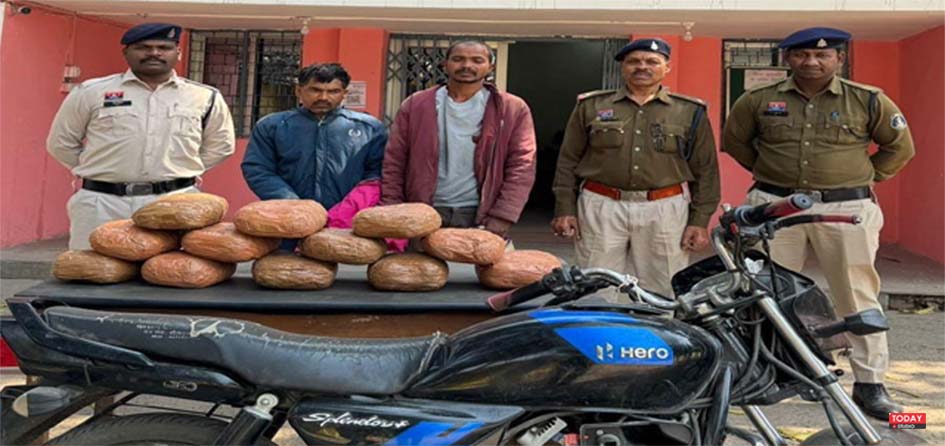 पूछताछ में मोटरसाइकिल चालक ने अपना नाम सुरेन्द्र कुमार राजवाड़े उर्फ पिंटू (33 वर्ष), निवासी रफेली थाना दरिमा जिला सरगुजा तथा पीछे बैठे व्यक्ति ने अपना नाम नरेश यादव (35 वर्ष), निवासी रतनपुर पाठीपारा थाना सीतापुर जिला सरगुजा बताया। दोनों आरोपियों को एनडीपीएस एक्ट के प्रावधानों की जानकारी देकर तलाशी लेने पर उनके पास प्लास्टिक बोरी में अलग-अलग पैकेटों में रखा कुल 12.410 किलोग्राम गांजा बरामद हुआ, जिसकी अनुमानित कीमत एक लाख 7 हजार रुपये है।