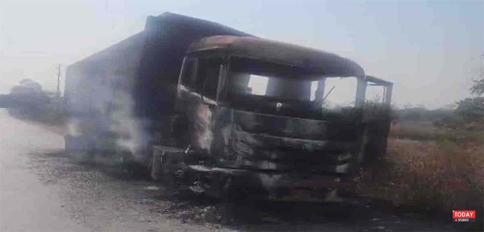 अफसरों पर हमला और दर्जनों वाहनों में आग