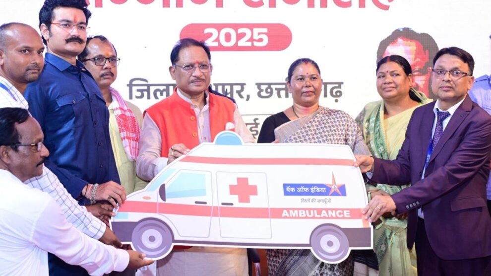 रायपुर। मुख्यमंत्री विष्णु देव साय ने आज जशपुर जिले के ग्राम बगिया स्थित कैम्प कार्यालय परिसर से अत्याधुनिक सुविधाओं से युक्त एम्बुलेंस को हरी झंडी दिखाकर रवाना किया। यह एम्बुलेंस बैंक ऑफ इंडिया द्वारा कॉर्पोरेट सामाजिक उत्तरदायित्व (CSR) निधि से प्रदत्त है, जिसमें बेसिक लाइफ सपोर्ट सिस्टम सहित अन्य उन्नत सुविधाएँ उपलब्ध कराई गई हैं।