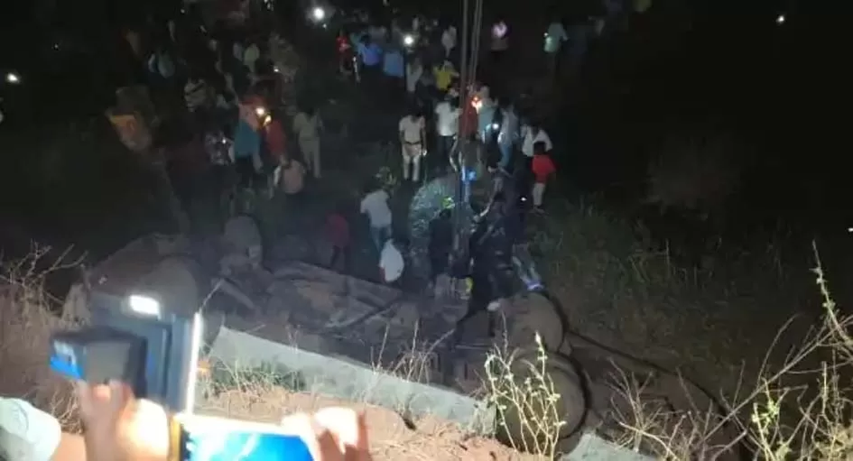 दुर्ग। छत्तीसगढ़ में बड़ा सड़क हादसा सामने आया है। डिस्टलरी कंपनी के कर्मचारियों से भरी बस 50 फिट गहरी खाई में जा गिरी। हादसे के बाद लोगों की भीड़ लग गई। लोग कर्मचारियों को बचाने के प्रयास में जुट गए। घटना की सूचना मिलते ही पुलिस और एसडीआरएफ की टीम मौके पर पहुंची। रेस्क्यू कर घायलों को बस से बाहर निकाला गया। घायलों को तत्काल एम्स अस्पताल भेजा गया है। जानकारी के अनुसार हादसे में 12 कर्मचारियों की मौत हो गई है। मृतकों के परिवार को 10-10 लाख रुपए मुआवजा दिया जाएगा।