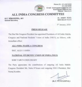 दिल्ली। कांग्रेस ने चांदनी चौक से पूर्व विधायक और पूर्व डूसू अध्यक्ष अलका लांबा को बड़ी जिम्मेदारी सौपी है। उन्हें अखिल भारतीय महिला कांग्रेस का अध्यक्ष नियुक्त किया गया है। लांबा नेटा डिसूजा की जगह लेंगी, वहीं दिल्ली के ही वरुण चौधरी को एनएसयूआई की कमान सौंप दी गई है। यह दोनों नियुक्तियां कांग्रेस की राष्ट्रीय कमेटी में दिल्ली के लगातार बढ़ते दबदबे की ओर ही संकेत दे रही हैं। ज्ञात हो कि पिछले दिनों एनएसयूआई के राष्ट्रीय अध्यक्ष पद के लिए राहुल गांधी ने 5 छात्र नेताओं के इंटरव्यू लिए थे।