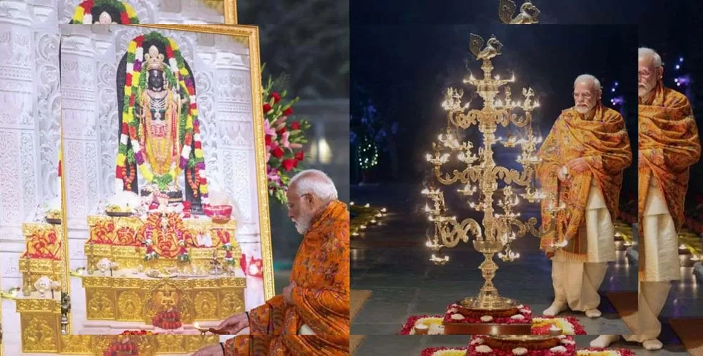 इससे पहले अयोध्या में पीएम मोदी मुख्य यजमान बनकर राम लला की प्राण प्रतिष्ठा अनुष्ठा में शामिल हुए। अनुष्ठान खत्म होने के बाद उन्होंने प्रभु श्री राम की आरती उतारी और लोगों को प्रसाद बांटा। कार्यक्रम के संपन्न होने तुरंत बाद उन्होंने लोगों को संबोधित भी किया।