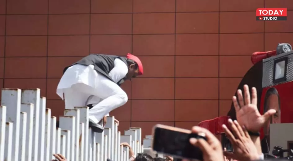 नई दिल्ली। जय प्रकाश नारायण की जयंती पर जेपीएनआईसी का गेट बंद करने से नाराज सपा के राष्ट्रीय अध्यक्ष अखिलेश यादव गेट फांदकर भीतर प्रवेश किया। अखिलेश यादव अपने रथ से आए थे। उनको मना करने जैसे ही पुलिस अधिकारी रथ के भीतर गए अखिलेश यादव नाराज हो गए। अखिलेश तुरंत रथ से उतरे और गेट फांदकर भीतर चले गए।