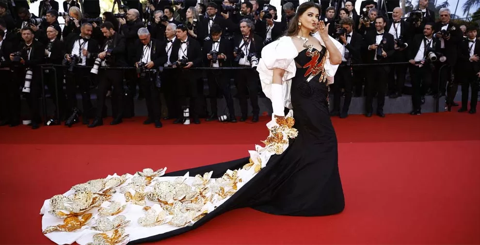 ऐश्वर्या के इस लुक को मोनोक्रोमैटिक लुक कहा जाता है। उन्होंने ब्लैक मोनोक्रोमैटिक ड्रेस को व्हाइट श्रग के साथ पेयर किया। इसे फाल्गुनी और शेन की डिजाइनर जोड़ी ने डिजाइन किया है।