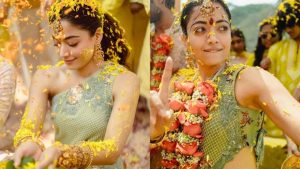 सोमवार को रश्मिका ने अपने इंस्टाग्राम पर हल्दी सेरेमनी की तस्वीरें शेयर कीं और कैप्शन के जरिए बताया कि उनकी और विजय की हल्दी की रस्म “हल्दी+होली थी”, जिसमें दोनों ने अपने परिवार के साथ मिलकर खूब एंजॉय किया।