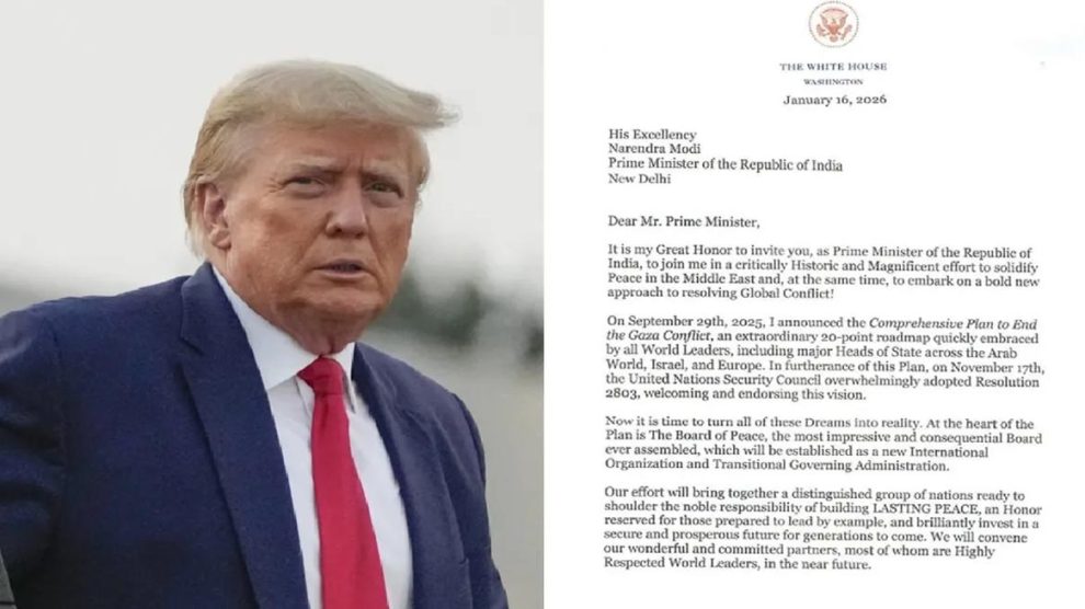 Trump Letter To PM Modi: अमेरिका के राष्ट्रपति डोनाल्ड ट्रंप ने प्रधानमंत्री नरेंद्र मोदी को पत्र लिखा है। ट्रंप ने पीएम मोदी को गाजा बोर्ड ऑफ पीस का हिस्सा बनने का आमंत्रण भेजा है। पत्र में राष्ट्रपति ट्रंप ने कहा कि यह मेरे लिए अत्यंत गौरव की बात है कि मैं आपको, भारत गणराज्य के प्रधानमंत्री के रूप में, मध्य पूर्व में शांति को मजबूत करने के एक महत्वपूर्ण ऐतिहासिक और भव्य प्रयास में शामिल होने के लिए आमंत्रित कर रहा हूं, और साथ ही वैश्विक संघर्षों के समाधान के लिए एक साहसिक नई दृष्टिकोण अपनाने के लिए भी।