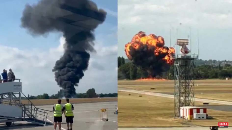 लंदन में टेकऑफ के बाद क्रैश हुआ प्लेन, विमान में लगी भीषण आग
