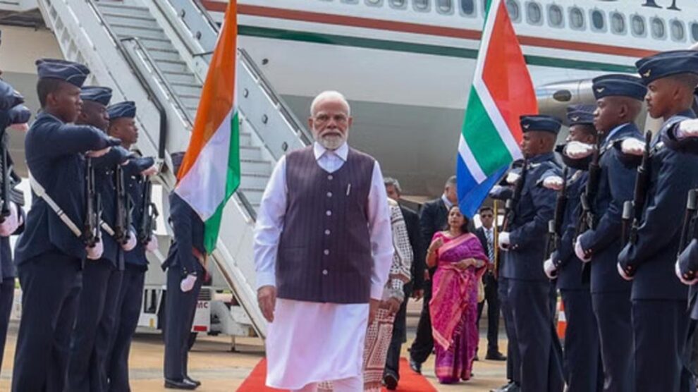 जोहानिसबर्ग। शुक्रवार को प्रधानमंत्री नरेन्द्र मोदी अफ्रीका में पहली बार आयोजित हो रहे जी20 शिखर सम्मेलन में भाग लेने तीन दिवसीय यात्रा पर दक्षिण अफ्रीका के जोहानिसबर्ग पहुंचे। प्रधानमंत्री मोदी जी20 शिखर सम्मेलन से इतर छठे आईबीएसए (भारत-ब्राजील-दक्षिण अफ्रीका) शिखर सम्मेलन में भी भाग लेंगे।