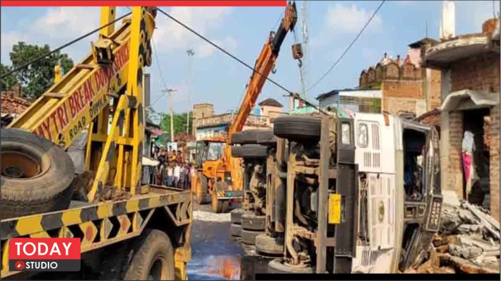 झारखण्ड. दुमका में दुर्गा मंदिर के पास एक 10 चक्का ट्रक के अनियंत्रित होकर एक घर को तोड़ते हुए सड़क किनारे पलट जाने से दो बच्चों की मौत हो गई जबकि एक बच्चा गंभीर रूप से जख्मी हो गया।
