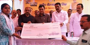 0 श्रम मंत्री ने हितग्राहियों को सहायता राशि का चेक प्रदान किया