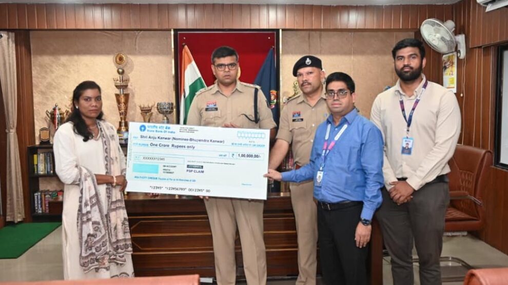 उक्त योजना अंतर्गत सड़क दुर्घटना बीमा योजना के तहत पुलिस विभाग के सन् 2023 बैच के आरक्षक भूपेन्द्र सिंह कंवर, जो थाना दीपका में पदस्थ थे, के दिवंगत होने पर उनके परिजनों को ₹1,00,00,000/- (एक करोड़ रुपए) की सहायता राशि का चेक प्रदान किया गया है।