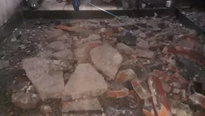 कोरबा। पुरानी बस्ती भंडारी चौक में वार्ड क्रमांक 6 में एक बड़ी घटना होने से टल गई है। मंगलवार की शाम रात लगभग 8.30 बजे एक मकान की छत का भारी भरकम बाउंड्रीवाल भरभराकर गिर गया। सुखद यह रहा है कि परिवार का कोई सदस्य छज्जे के नीचे नहीं था। एक बड़ी घटना घट सकती थी। दो से तीन क्विंटल वजनी छज्जा गिरते ही कई टुकड़ों में बट गया। कोरबा टूडे स्टूडियो ने मौके पर नीचे गिरने के बाद मलबे की तस्वीर अपने कैमरे में कैद कर लिया है। जिसे देखकर अंदाजा लगाया जा सकता है कि घटना कितनी भयावह हो सकती थी।