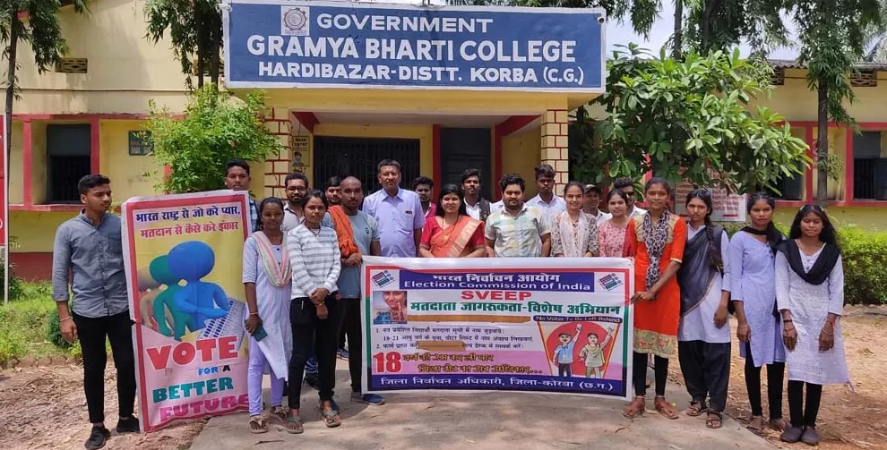 कोरबा। कलेक्टर एवं जिला निर्वाचन अधिकारी अजीत वसंत के निर्देशन में मतदाताओं को जागरूक करने जिले में स्वीप की गतिविधियां जारी हैं। इसी कड़ी में शासकीय मुकुटधर पाण्डेय महाविद्यालय कटघोरा में प्राचार्य डॉ. एम. एम. जोशी के नेतृत्व में मतदाता जागरूकता का कार्यक्रम चलाया गया।