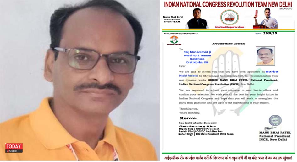 कोरबा। भारतीय राष्ट्रीय कांग्रेस क्रांति संगठन (आईएनसीआर) के जिलाध्यक्ष के पद पर तुमान निवासी फैज मोहम्मद को ’नियुक्त किए गए हैं। यह नियुक्ति उन्हें राष्ट्रीय अध्यक्ष मनु भाई पटेल की अनुशंसा पर पार्टी से जुड़े होने व सेवाभाव से कार्य करने की वजह से दी गई है। उन्हें पार्टी के हित और जमीनी स्तर पर मजबूत करने कहा गया है।