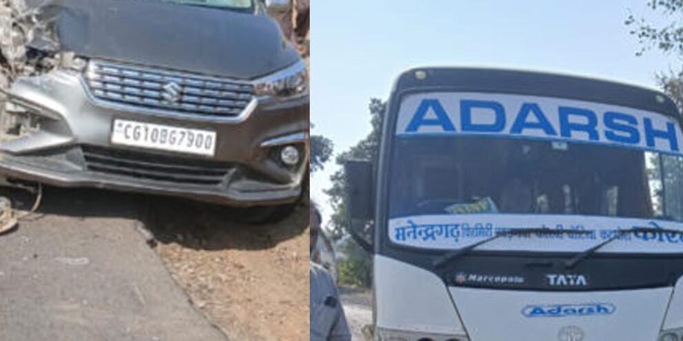 कोरबा,कोरबी-चोटिया। पसान थाना अंतर्गत दोपहर चिरमिरी-कोरबी सड़क मार्ग पर हसदेव नदी ब्रिज के पास हादसा हो गया। तेज रफ्तार आदर्श बस क्रमांक CG10-BJ1981 के चालक अजय सिंह गोंड 37 वर्ष ग्राम भदरा पारा, झिनपुरी निवासी ने बैकुंठपुर सोनहत की ओर से बिलासपुर की ओर जा रही कार को सामने से टक्कर मार दिया।