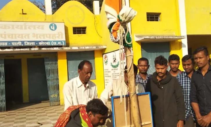 कोरबा। 5 फिट की लकड़ी गाड़कर तिरंगा फहराने के बाद हरदीबाजार तहसील अंतर्गत ग्राम पंचायत भलपहरी सुर्खियों में आ गया है। भवन के सामने न तो चबूतरा का निर्माण किया गया और न ही लोहे का पाईप लगाया गया है। सरपंच व सचिव ने अपनी गलती को स्वीकार किया है। उन्होंने बताया कि गणतंत्र दिवस पर आवश्यक कार्य होने के कारण चबूतरा निर्माण नहीं हो पाया था। इसलिए बिना चबूतरा निर्माण के ध्वजारोहण किया गया। आगे इस बात का ध्यान रखा जाएगा। पंचायत में सम्मानपूर्वक ध्वजारोहण विधिविधान से किया गया है। शाम ढलने के साथ ही तिरंगे को निकालकर व्यवस्थित रखा गया है। एक ओर पंचायत में मामले का पटाक्षेप हो गया है, वहीं इस घटना से सबक लेने की भी जरूरत है, ताकि समय रहते राष्ट्रीय पर्व मनाने की सभी तैयारी को पूर्ण कर लिया जाए।