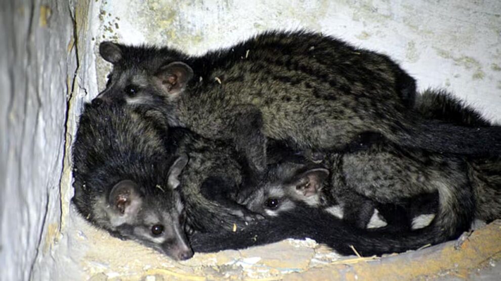 कोरबा। कटघोरा वनमंडल के मुढ़ाली गांव में एक दुर्लभ एशियन पाम सिविट (Asian palm civet) और उसके पांच बच्चों को वन विभाग और नोवा नेचर वेलफेयर सोसाइटी की संयुक्त टीम ने सुरक्षित रेस्क्यू किया। सिवेट मां अपने बच्चों के साथ गांव के एक घर की धान की कोठी में रह रही थी।