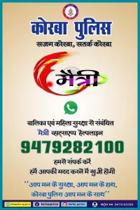 कोरबा। बालिका और महिला की सुरक्षा के लिए कोरबा पुलिस द्वारा ‘मैत्री’ नाम से व्हाट्सएप हेल्पलाइन नंबर 9479282100 जारी किया गया इस दौरान मंत्री लखनलाल देवांगन उपस्थित रहे। 2 अक्टूबर गांधी जयंती के अवसर पर कलेक्ट्रेट सभाकक्ष में पुलिस के द्वारा मैत्री नामक बालिका और महिला सुरक्षा के लिए व्हाट्सएप हेल्पलाइन नंबर का शुभारंभ किया गया।