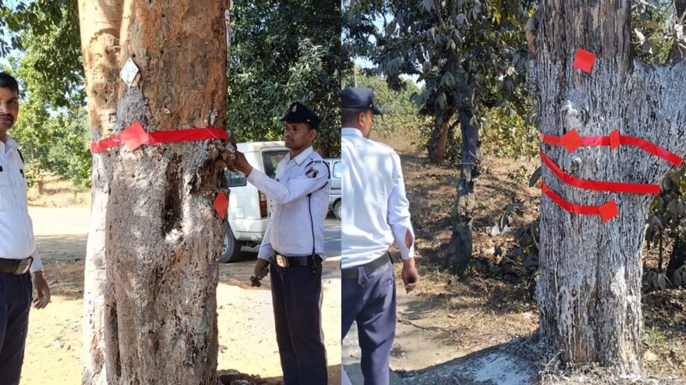 सड़क दुर्घटना रोकने वृक्षों व खंभों पर किया गया सफेद पेंट व रेडियम पट्टीकरण, एसपी ने की लोगों से ये अपील