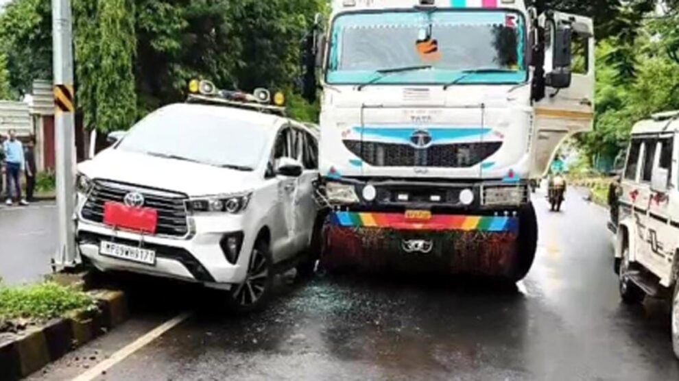 Home » तेज रफ्तार डंपर ने कलेक्टर की गाड़ी को मारी ठोकर, डिवाइडर पर चढ़ते हुए खंभे से टकराई