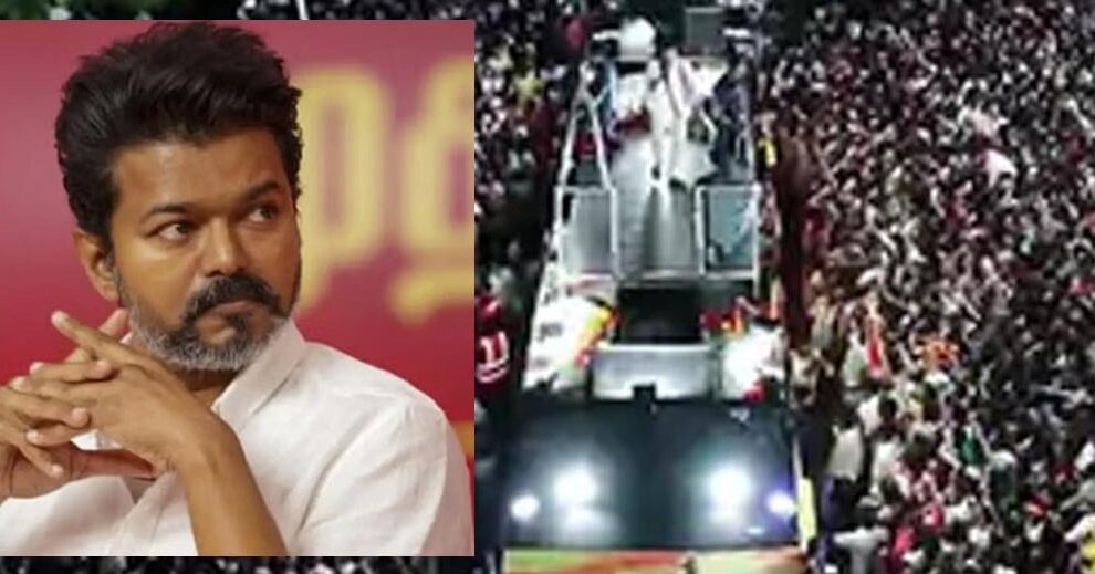 तमिलनाडु पुलिस के मुताबिक, विजय की रैली के लिए 10 हजार लोगों की परमिशन थी, लेकिन, 1 लाख 20 हजार स्क्वायर फीट एरिया में 50 हजार से ज्यादा लोग जमा हो गए। इस दौरान एक्टर 6 घंटे की देरी से पहुंचे। विजय को बताया गया कि 9 साल की एक बच्ची गुम हो गई थी। उन्होंने मंच से उसे तलाशने की अपील की, जिसके बाद वहां भगदड़ के हालात बन गए।