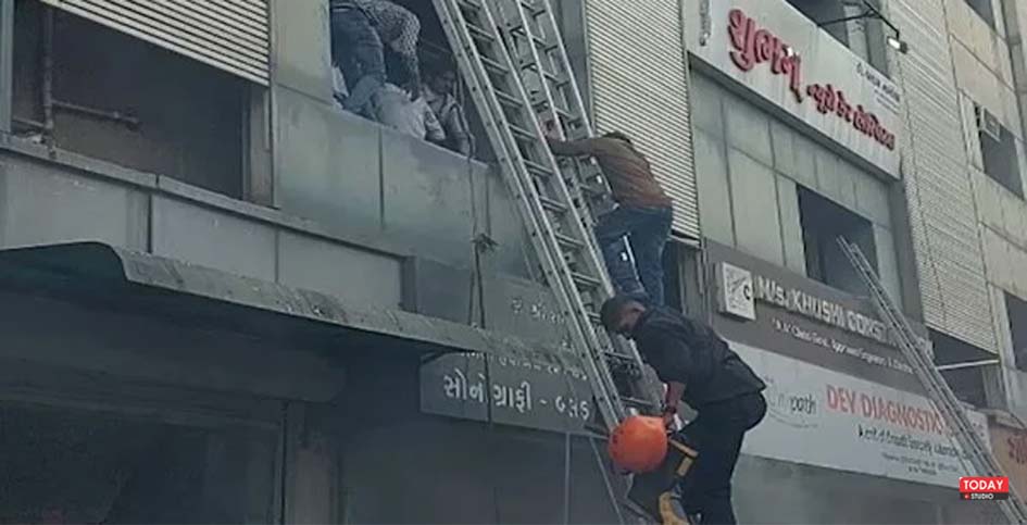 भावनगर। गुजरात के भावनगर शहर के कालानाला क्षेत्र स्थित कालूभा रोड पर समीप कॉम्प्लेक्स में बुधवार सुबह एक पैथोलॉजी लैब में अचानक आग लग गई। देखते ही देखते आग पूरे ग्राउंड फ्लोर से ऊपरी मंजिलों तक फैल गई और कॉम्प्लेक्स में मौजूद 3-4 अस्पताल धुएं व आग की चपेट में आ गए।