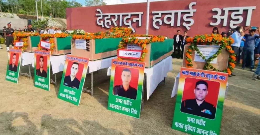 देहरादून। जम्मू-कश्मीर के कठुआ में हुए आतंकवादी हमले में उत्तराखंड के पांच जवान शहीद हो गए। प्रदेश के बलिदानियों रुद्रप्रयाग निवासी नायब सूबेदार आनंद सिंह, लैंसडौन निवासी हवलदार कमल सिंह, टिहरी गढ़वाल निवासी नायक विनोद सिंह, रिखणीखाल निवासी राइफलमैन अनुज नेगी और टिहरी के थाती दांगल निवासी राइफलमैन आदर्श नेगी के पार्थिव शरीर को मंगलवार की शाम देहरादून एयरपोर्ट लाया गया।