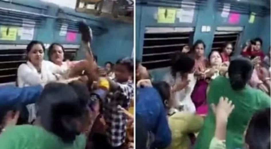 ट्विटर पर साझा किए गए वीडियो में देखा जा सकता है कि कोलकाता की एक लोकल ट्रेन में महिला कोच में महिलाएं एक दूसरे पर चिल्ला रहीं थी। इतना ही नहीं, हद तो तब हो गई जब इनके बीच की लड़ाई हाथापाई तक पहुंच गई। एक दूसरे को चप्पलों से मारना और बाल खींचना शुरू कर दिया।