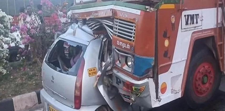 कार और लॉरी के बीच जोरदार टक्कर, दो बच्चों और एक महिला सहित 6 की मौत