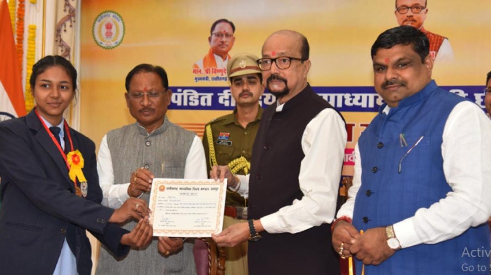 रायपुर। राज्यपाल रमेन डेका के मुख्य आतिथ्य एवं मुख्यमंत्री विष्णुदेव साय की अध्यक्षता में 10वीं एवं 12वीं के मेधावी विद्यार्थियों को सम्मानित किया गया। ये 2024 एवं 2025 के टॉप 10 मेधावी और विशेष पिछडी जनजाति के टॉप 01 विद्यार्थी है। स्कूल शिक्षा मंत्री गजेन्द्र यादव विशेष अतिथि के रूप में उपस्थित थे। लोकभवन के छत्तीसगढ़ मण्डपम् में माध्यमिक शिक्षा मंडल द्वारा आयोजित इस प्रतिभा सम्मान समारोह में पंडित दीनदयाल उपाध्याय मेधावी छात्र प्रोत्साहन योजना के तहत विद्यार्थियों को सम्मानित किया गया।