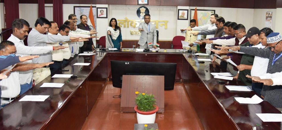 रायपुर। राष्ट्रीय मतदाता दिवस के अवसर पर लोकभवन सचिवालय में राज्यपाल के सचिव डॉ. सी. आर. प्रसन्ना, उप सचिव सुश्री निधि साहू, संवैधानिक प्रकोष्ठ के उप सचिव डॉ. रूपेन्द्र कवि सहित सभी अधिकारियों एवं कर्मचारियों ने मताधिकार की शपथ ली। सभी ने शपथ ली कि ‘‘हम भारत के नागरिक लोकतंत्र में अपनी पूर्ण आस्था रखते हुए यह शपथ लेते हैं कि हम अपने देश की लोकतांत्रिक परम्पराओं की मर्यादा को बनाए रखेंगे तथा स्वतंत्र, निष्पक्ष एवं शांतिपूर्ण निर्वाचन की गरिमा को अक्षुण्ण रखते हुए निर्भीक होकर धर्म, वर्ग, जाति, समुदाय, भाषा अथवा अन्य किसी भी प्रलोभन से प्रभावित हुए बिना सभी निर्वाचनों में अपने मताधिकार का प्रयोग करेंगे।’’