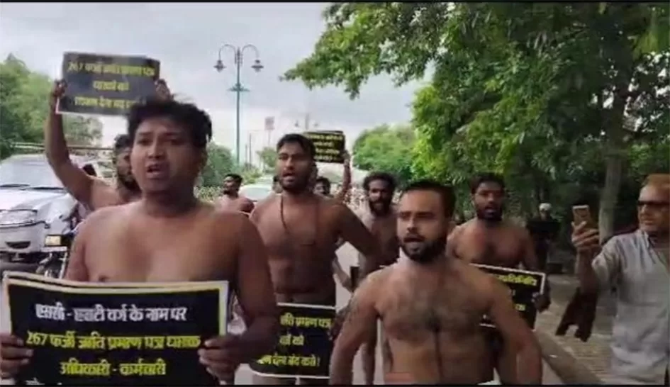 प्रदर्शनकारियों द्वारा जिला प्रशासन से निर्वस्त्र होकर विधानसभा घेरने हेतु अनुमति मांगी गयी थी, जिन्हें अनुमति न देकर निरस्त कर दिया गया था और उन्हें जानकारी भी उपलब्ध कराई गई थी, जो मांग आप लोगो द्वारा की जा रही है उनमें से पूर्व में भर्ती हुए और लंबे समय से कार्यरत फ़र्ज़ी जाति प्रमाण पत्र वाले 267 लोगों पर कार्यवाही के संबंध में राज्य शासन द्वारा संबंधित विभागों को कार्यवाही हेतु वर्ष 2020 में पत्र जारी किया गया था। इसमें से 40 लोगों को बर्खास्त भी किया जा चुका है, कुछ के प्रकरण में कार्यवाही प्रक्रियाधीन है, जबकि ज्यादातर प्रकरणों में माननीय न्यायालय से स्टे है। इसके बावजूद प्रदर्शनकारियों ने अवैधानिक और भारतीय सामाजिक मूल्यों के विपरीत निर्वस्त्र होकर अश्लील प्रदर्शन किया।
