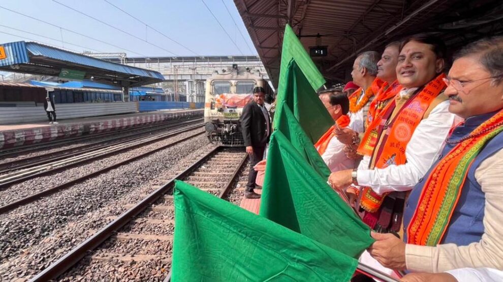 रायपुर। रामलला दर्शन योजना के अंतर्गत आज भारत गौरव स्पेशल ट्रेन राजनांदगांव से अयोध्या धाम की ओर रवाना हुई। इस अवसर पर सांसद संतोष पांडे, छत्तीसगढ़ टूरिज्म बोर्ड के अध्यक्ष नीलू शर्मा और महापौर मधुसूदन यादव ने हरी झंडी दिखाकर ट्रेन को रवाना किया। दुर्ग स्टेशन पर विधायक ललित चंद्राकर ने तीर्थ यात्रियों का स्वागत व अभिनंदन किया।