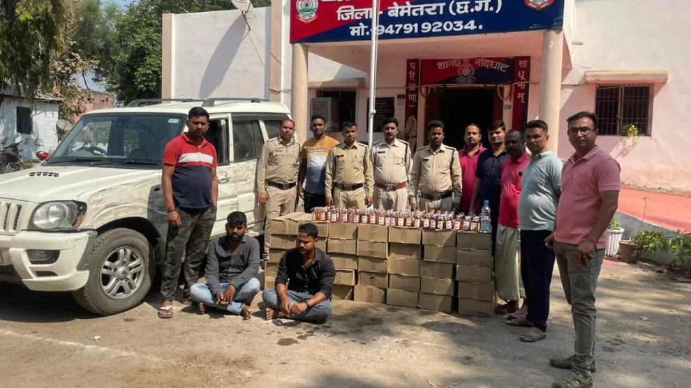 बेमेतरा। पुलिस द्वारा अवैध शराब की तस्करी करने वालों पर सख्त कार्यवाही की जा रही है। इसके लिए विशेष अभियान भी चलाया जा रहा है। इसी तारतम्य में मुखबिर की सूचना पर पुलिस ने कार्यवाही करते हुए दो तस्कर को पकड़ा है।