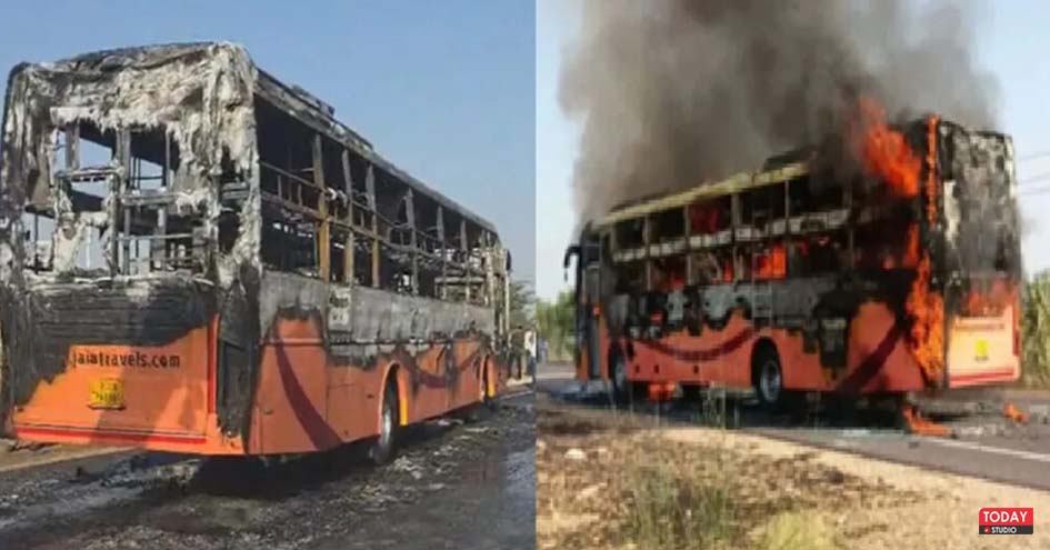 जयपुर । जैसलमेर में जिला मुख्यालय से 20 किलोमीटर दूर मंगलवार दोपहर करीब साढ़े तीन बजे एक निजी एसी स्लीपर बस में शार्ट सर्किट के कारण आग लग गई। इसमें 20 लोगों की जिंदा जलने से मौत हो गई, जबकि तीन दर्जन से अधिक लोग गंभीर रूप से झुलस गए। मृतकों में दो बच्चे और चार महिलाएं शामिल हैं। करीब 70 प्रतिशत झुलसे 16 लोगों को जोधपुर के मथुरादास अस्पताल में भर्ती कराया गया है। अन्य घायलों का उपचार जैसलमेर के जवाहर अस्पताल में जारी है। मृतकों की संख्या बढऩे की आशंका है।
