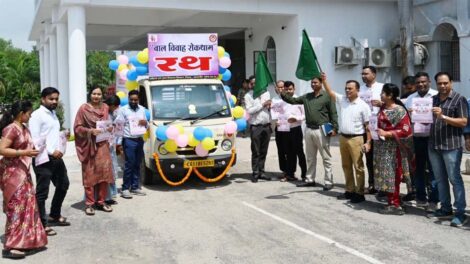 जांजगीर-चांपा। कलेक्टर जन्मेजय महोबे ने कलेक्ट्रेट परिसर से बाल विवाह मुक्त छत्तीसगढ़ अभियान अंतर्गत बाल विवाह रोकथाम रथ को हरी झंडी दिखाकर रवाना किया। इस दौरान अपर...