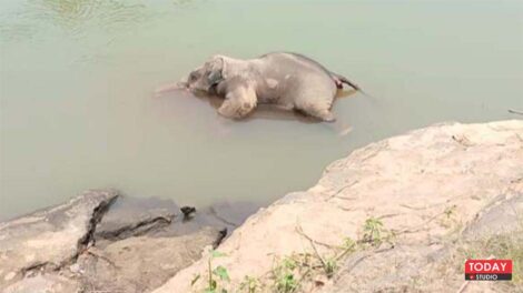 Home » Elephant calf drowns in river Baby elephant dies in river Elephant calf drowning incident