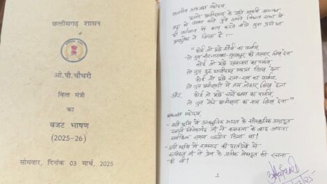 रायपुर । छत्तीसगढ़ विधानसभा में आज ऐतिहासिक क्षण देखने को मिला जब वित्त मंत्री ओपी चौधरी ने हस्तलिखित बजट पेश किया। यह पहला मौका है जब राज्य में कंप्यूटर-टाइप्ड बजट की...