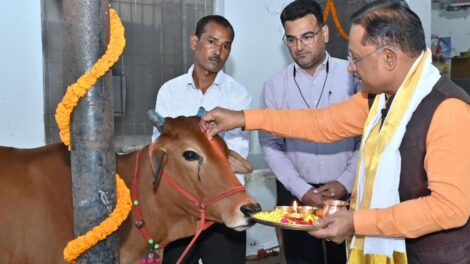 रायपुर। मुख्यमंत्री विष्णु देव साय ने आज मुख्यमंत्री निवास रायपुर में स्थित गौशाला में गोवर्धन पूजा के अवसर पर गौमाता की पूजा-अर्चना की और गौ माता को खिचड़ी खिलाकर...