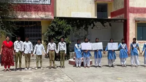Home » Students gave message of voter awareness by forming human chain